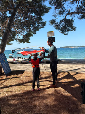 For me, Mihovil, windsurfing has been a way of life for over a decade. It all started in Bol on the island of Brač, where I first felt the rush of windsurfing. Since then, I’ve been fortunate to teach in some of Europe’s top windsurfing spots – from the iconic Lake Garda and the vibrant Greek islands of Naxos and Rhodes, to the wild waters of Tenerife, Fuerteventura, Gran Canaria and Tarifa. Each destination taught me something new, and now I’m bringing all that experience back to the beautiful shores of Fažana.